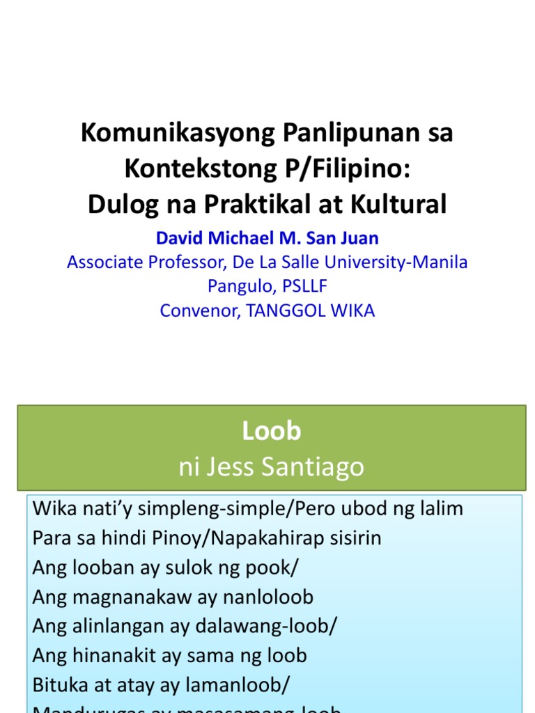 18022020 Loob ni Jess Santiago Ang pagpasok ay pagpaloob Pagsisisiy pagbabalik-loob Ang kabarkaday kapalagayang-loob Ang kaibigay katapatang-loob Ang taong matatag ay buo ang loob Ang nagtitimpi kuloy nasa loob Ang isip at damdamin ay niloloob Hindi nababayaran ang utang na loob Wika ang tulay na tuloy-tuloy Sa loob ng puso at utak ng Pinoy. Santiago laserna Jess greenberg Jess. Santiago laserna Ni Luis santiago Ellona santiago Francisco santiago Andrej ni Donten ni warau Kimi ni todoke - op a en.