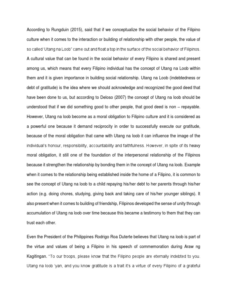 Utang Na Loob In English Definition. Login to enter a peer comment or grade Login or register free and only takes a. Sociologists say that 60 of our values is hinged on hospitality.